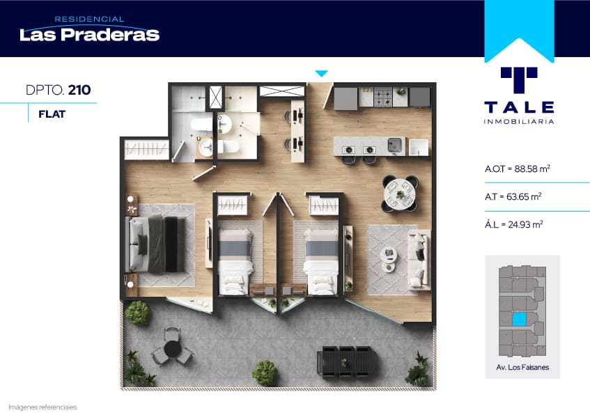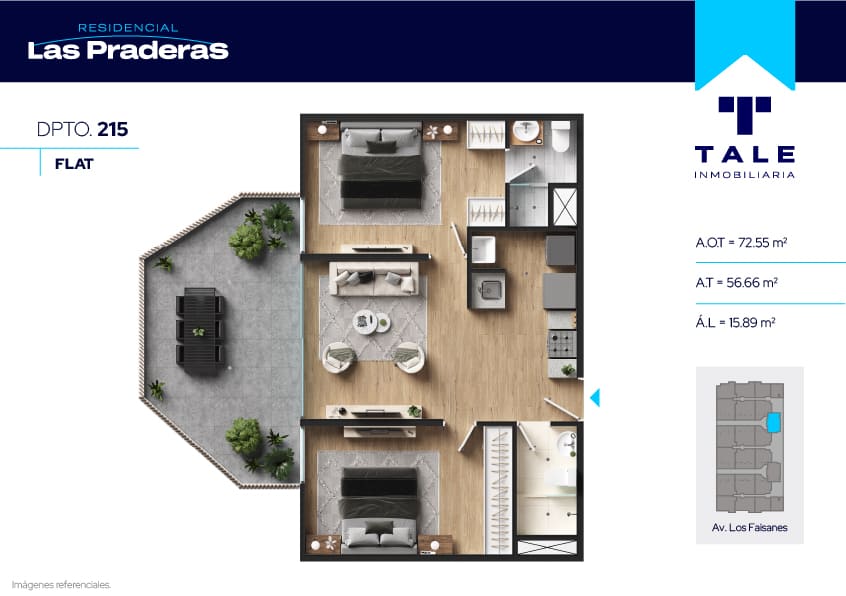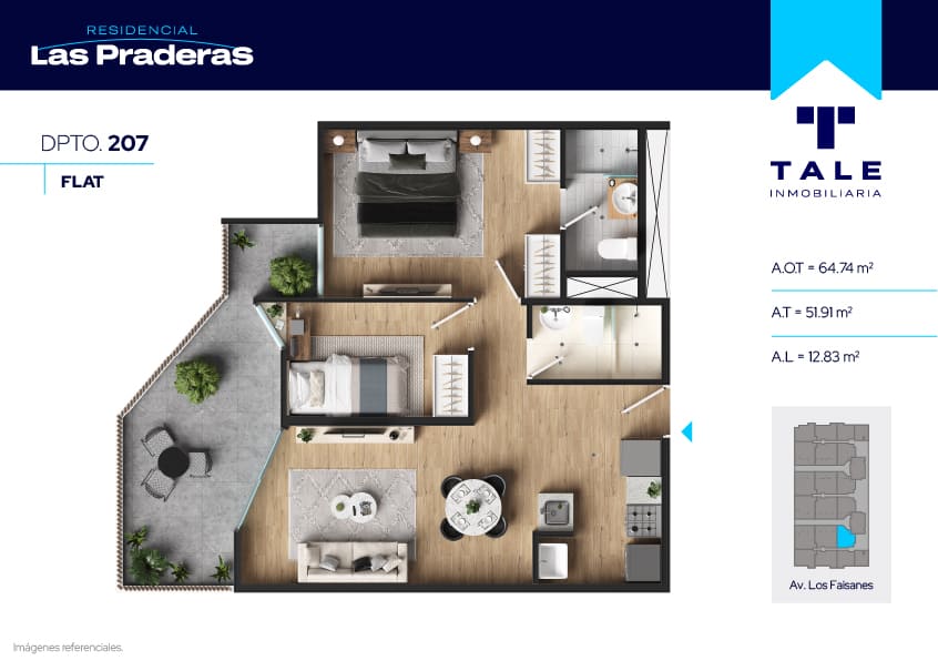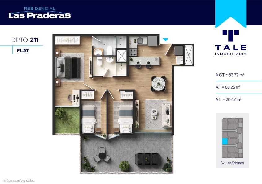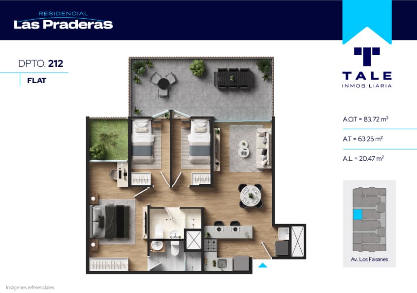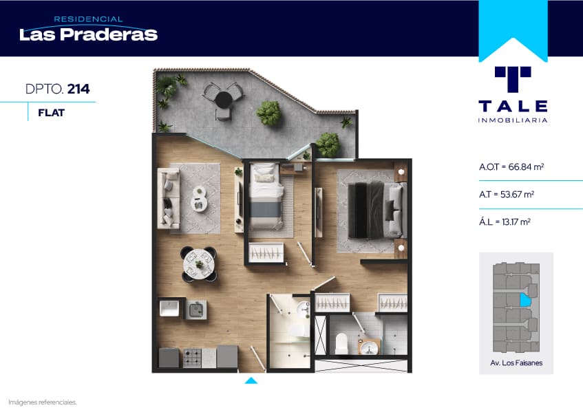 Tale llegó a la Avenida Los Faisanes, una de las zonas de mayor crecimiento inmobiliario en el distrito de Chorrillos. Llegamos para ofrecer viviendas con el estándar de construcción, diseño y acabados que Tale viene desarrollando a lo largo de más de 13 años de experiencia. Bienvenido al Proyecto Las Praderas, un lugar donde la comodidad y el estilo combinan perfectamente para ti y tu familia. El proyecto cuenta con Lobby, Smart Cafe, SUM, Gimnasio, Zona para niños, Área de parrilla, Co-working, terraza, lounge y Sky Bar.