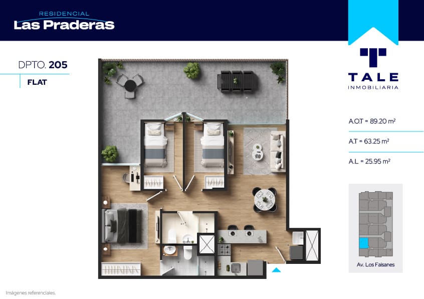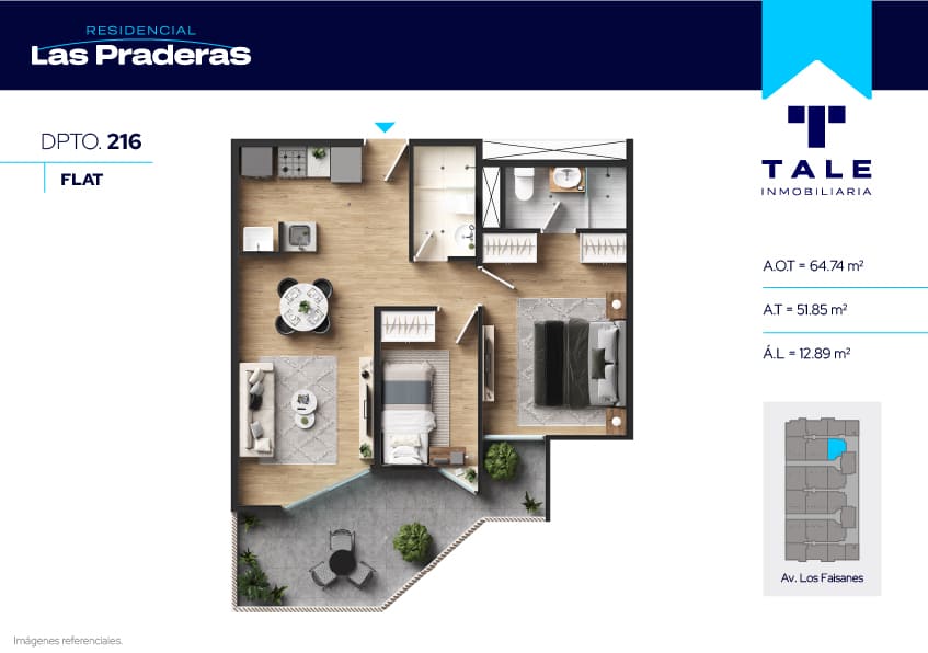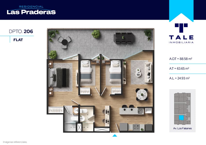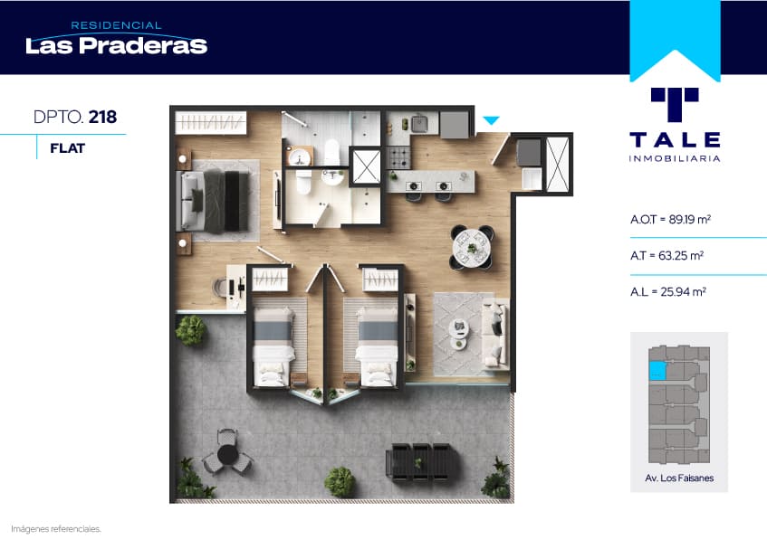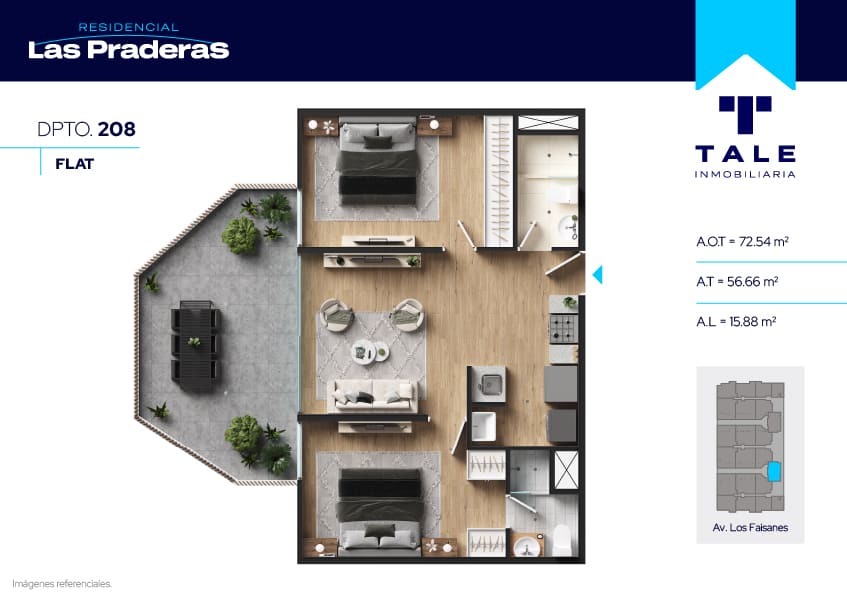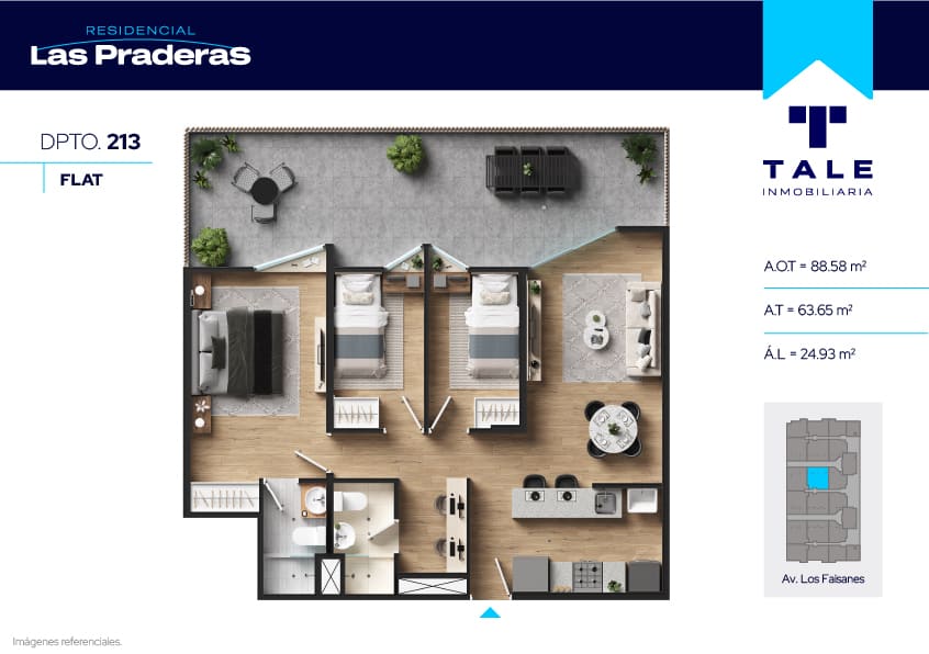 Tale llegó a la Avenida Los Faisanes, una de las zonas de mayor crecimiento inmobiliario en el distrito de Chorrillos. Llegamos para ofrecer viviendas con el estándar de construcción, diseño y acabados que Tale viene desarrollando a lo largo de más de 13 años de experiencia. Bienvenido al Proyecto Las Praderas, un lugar donde la comodidad y el estilo combinan perfectamente para ti y tu familia. El proyecto cuenta con Lobby, Smart Cafe, SUM, Gimnasio, Zona para niños, Área de parrilla, Co-working, terraza, lounge y Sky Bar.