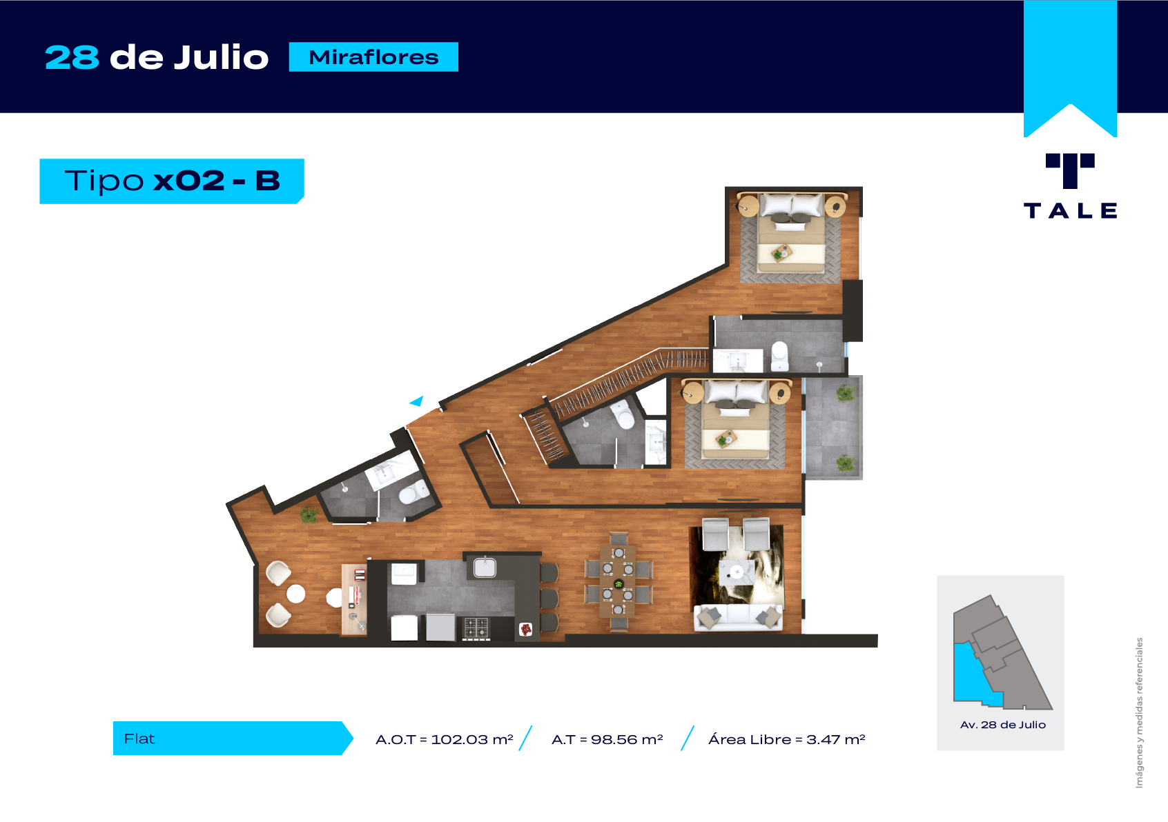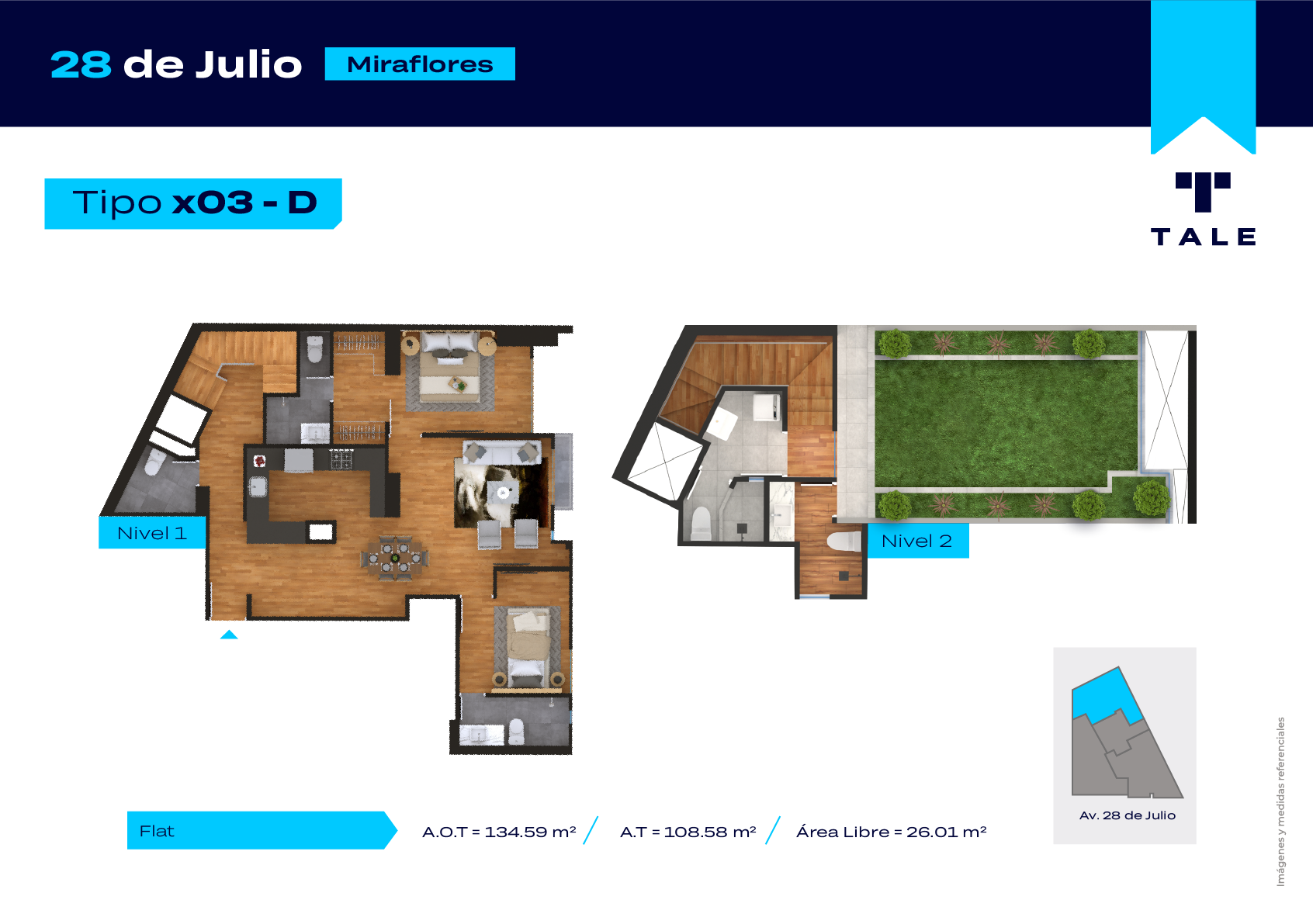 Muy cerca al centro financiero, supermercados, restaurantes Cuenta con flats y dúplex desde 69.72m2 de 1 a 3 dormitorios. Excelentes espacios innovadores con acabados de primera. El proyecto cuenta con Lobby, SUM (co-working), Terraza y Jardín (azotea), Sala de Yoga / Pilates y Estacionamientos de Bicicletas.