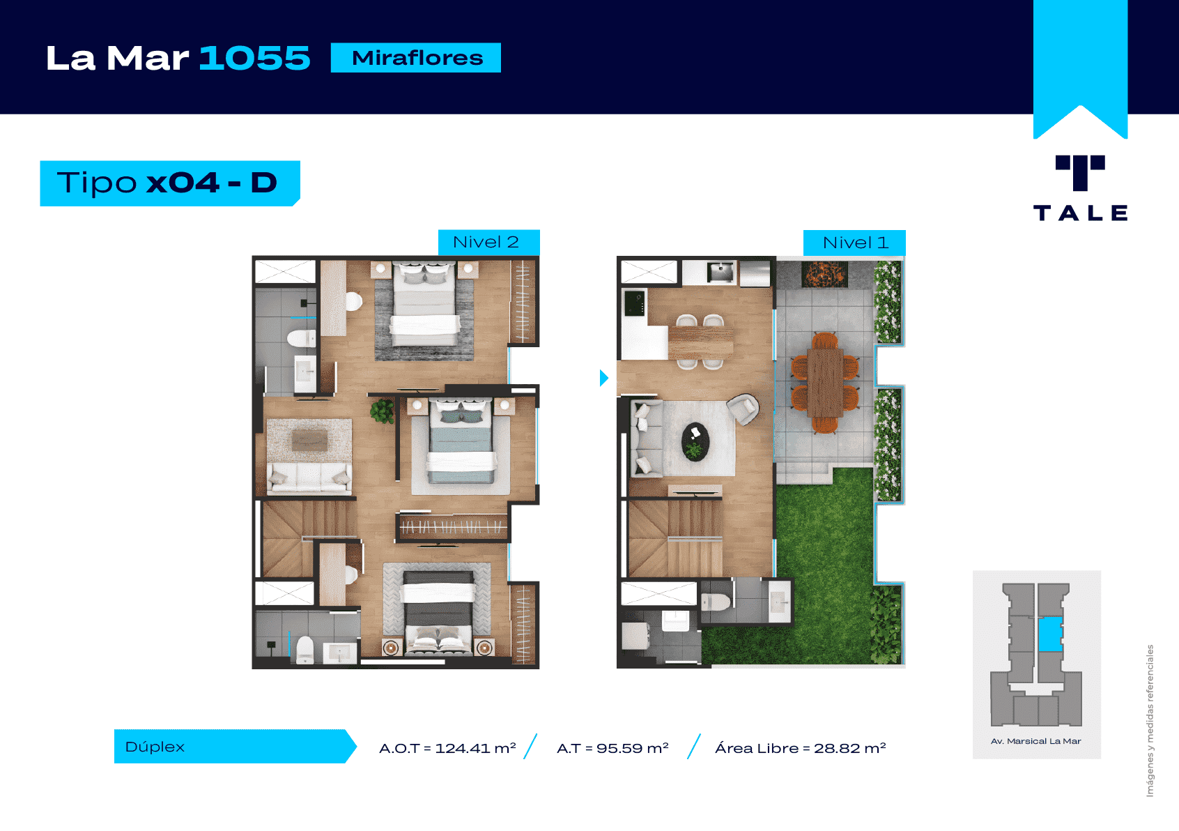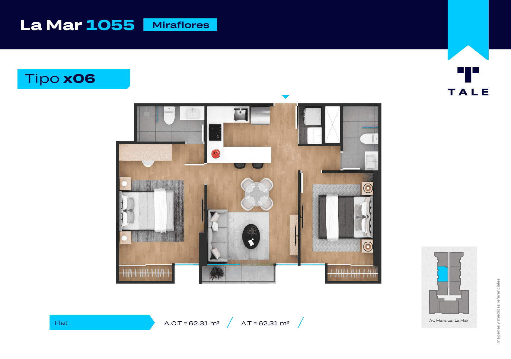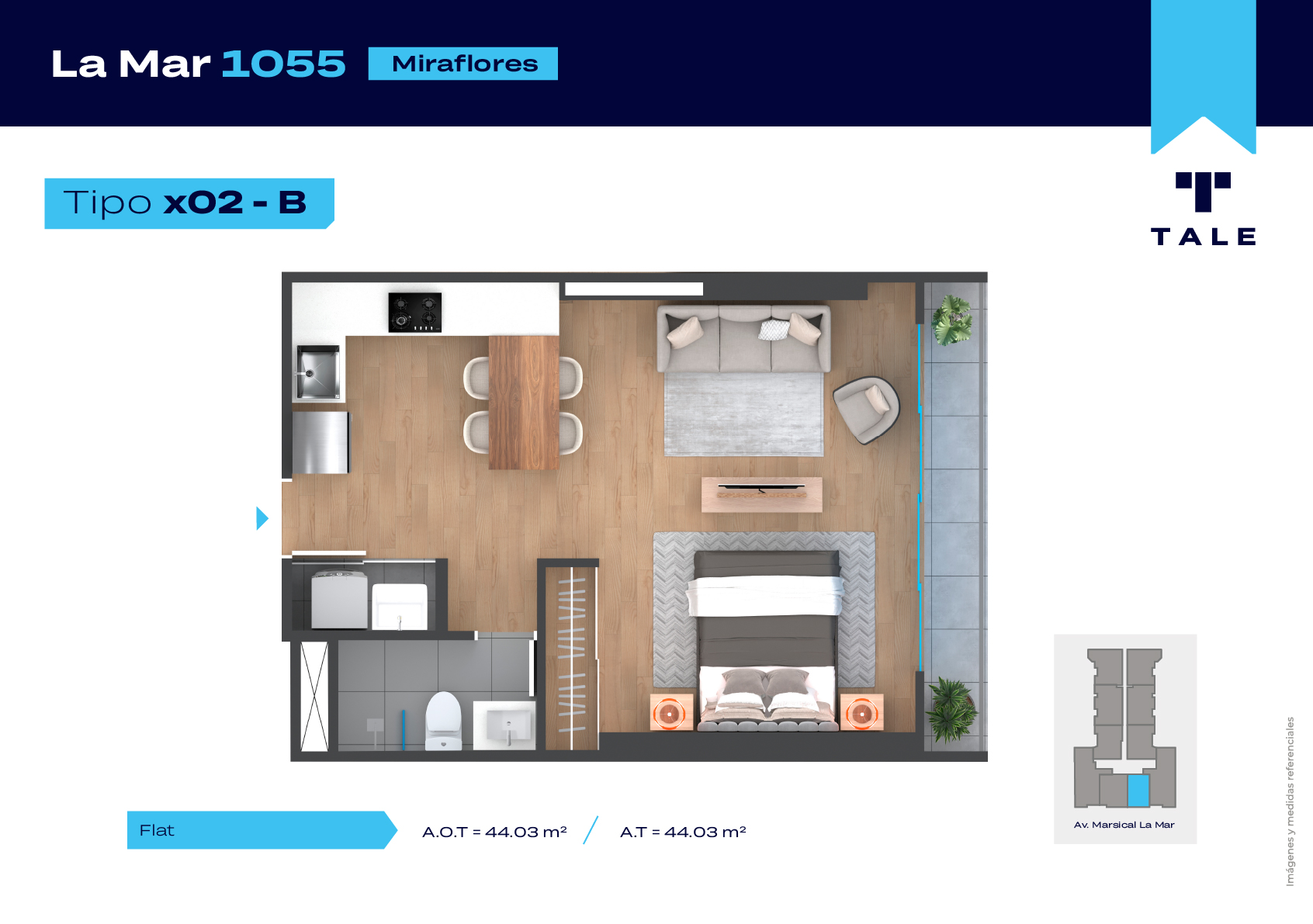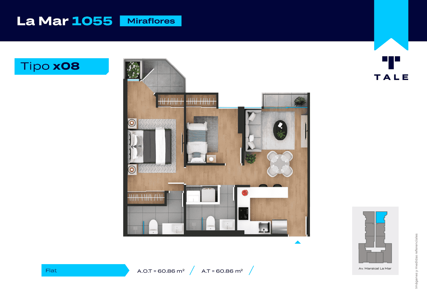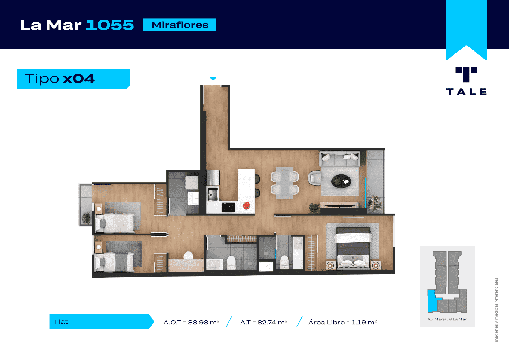 La Mar es una residencial de 13 pisos, a 3 cuadras y media del malecón y dentro del Hub Gastronomico de Miraflores. El proyecto cuenta con Lobby, Estacionamiento de bicicleta, Piscina, Terraza, Área de Parrillas, Sala de Jovenes y Gimnasio.