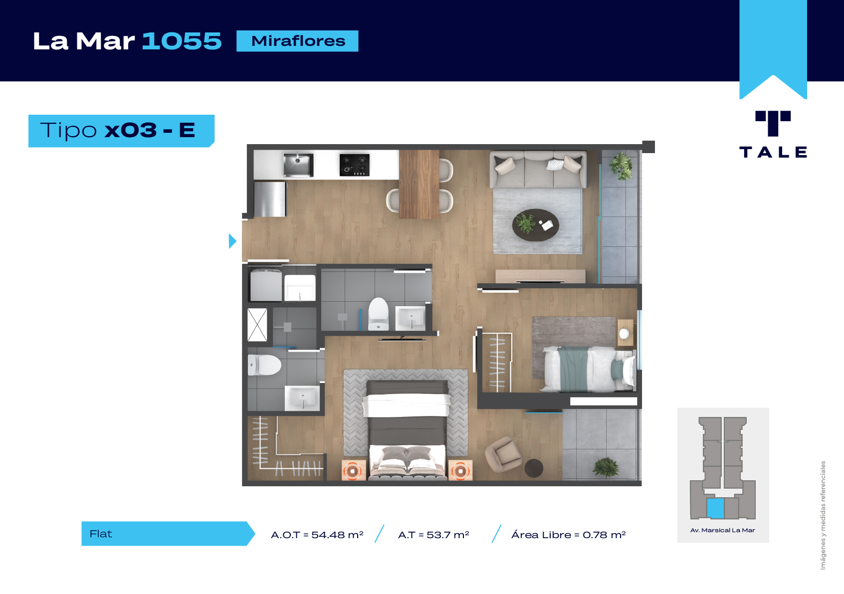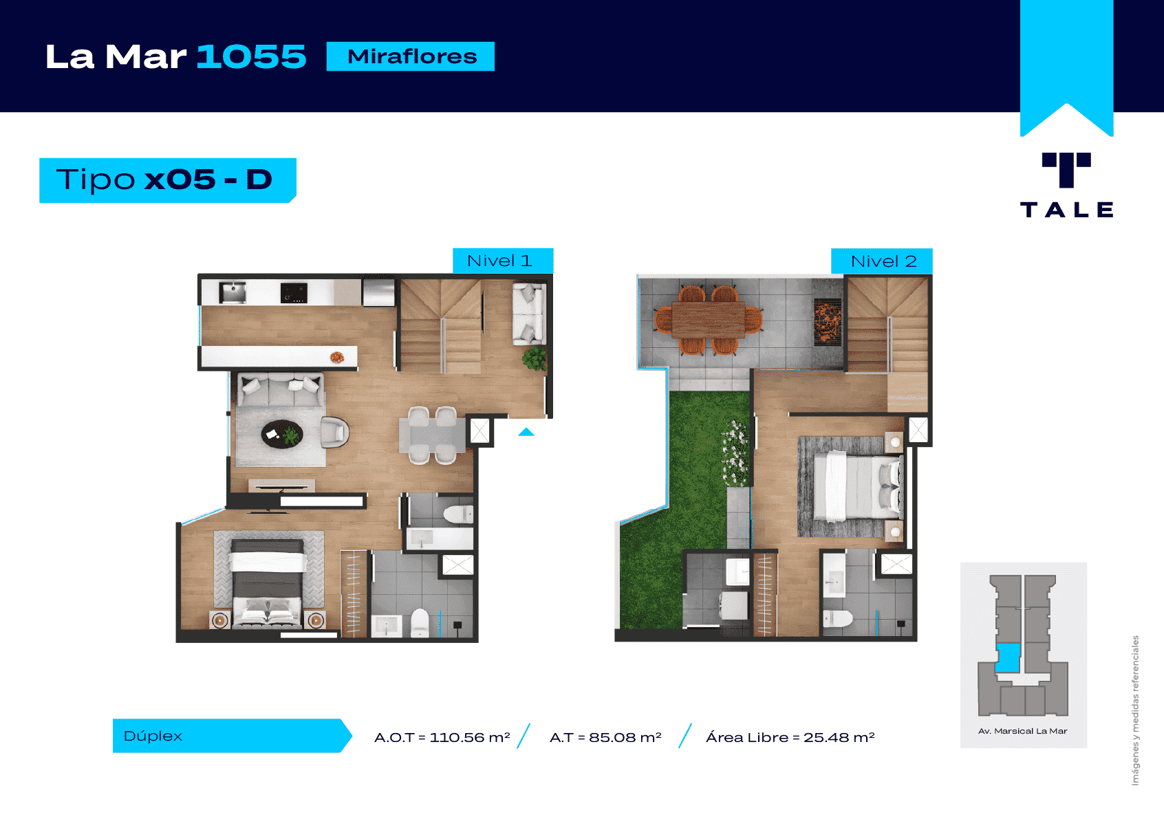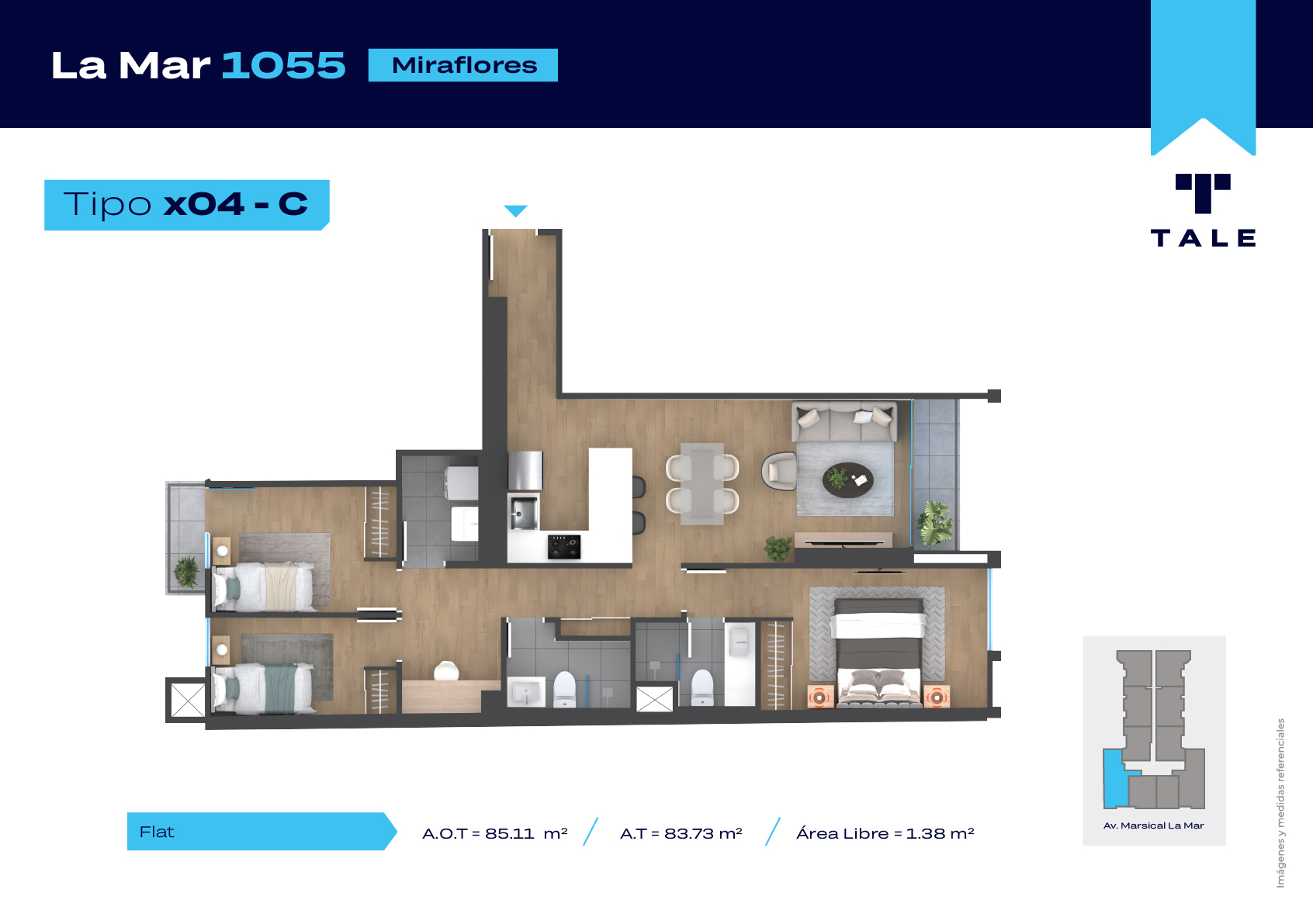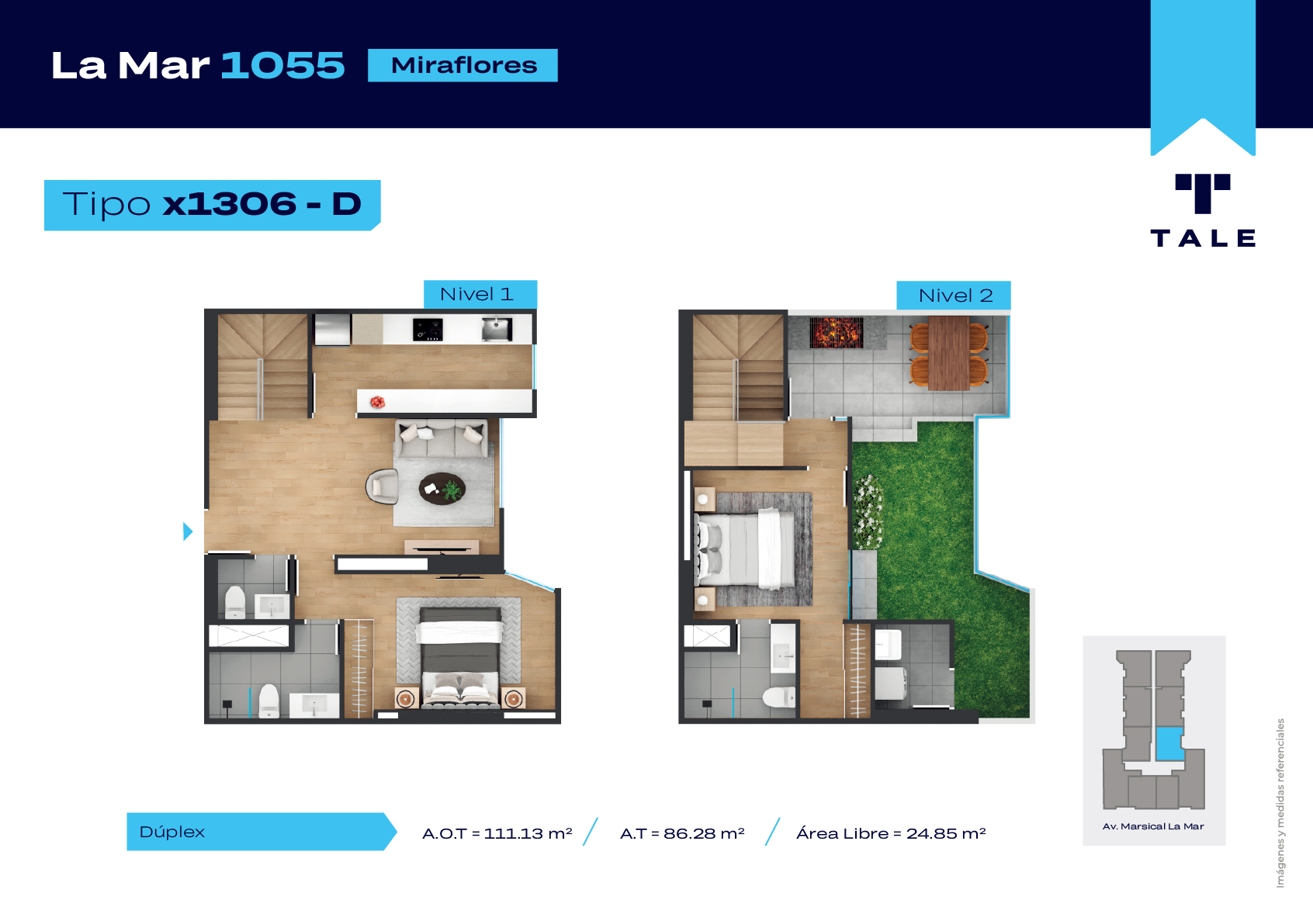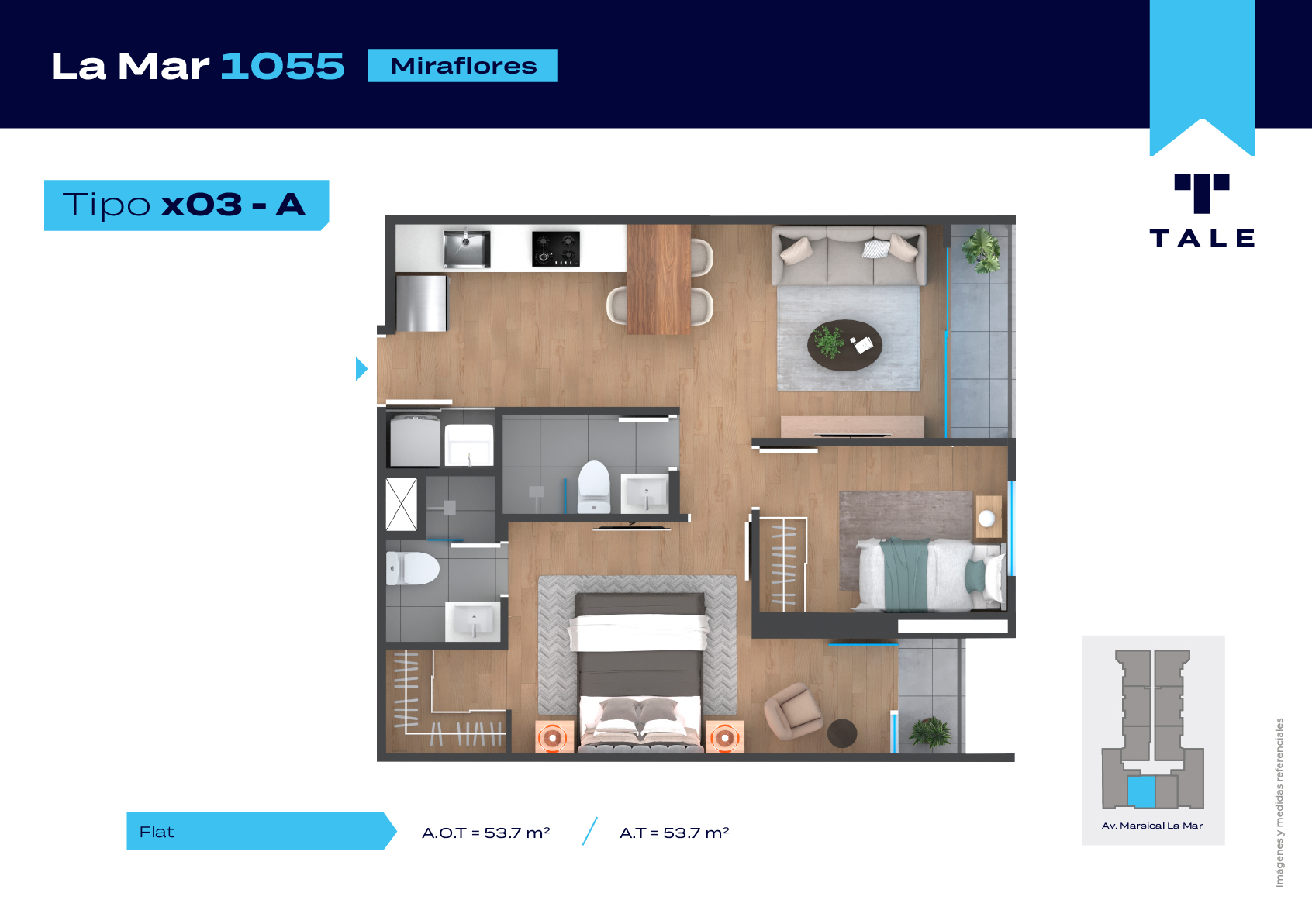 La Mar es una residencial de 13 pisos, a 3 cuadras y media del malecón y dentro del Hub Gastronomico de Miraflores. El proyecto cuenta con Lobby, Estacionamiento de bicicleta, Piscina, Terraza, Área de Parrillas, Sala de Jovenes y Gimnasio.