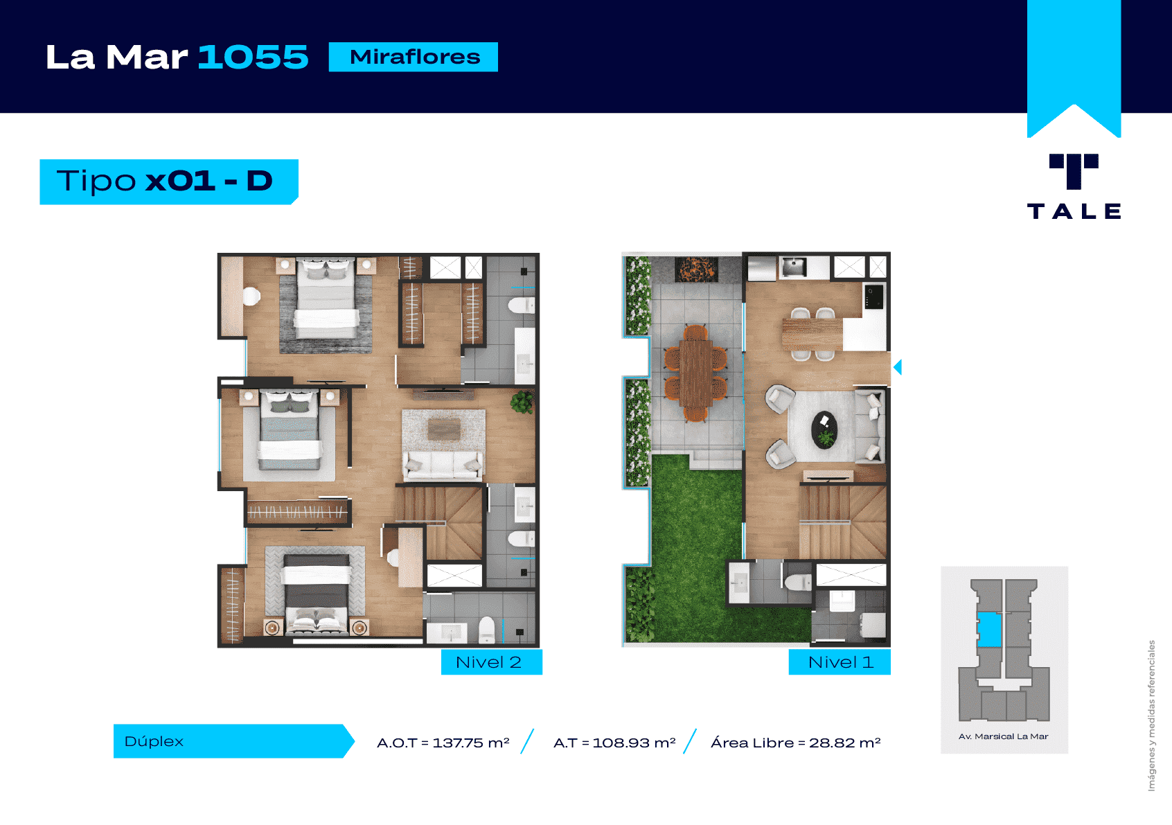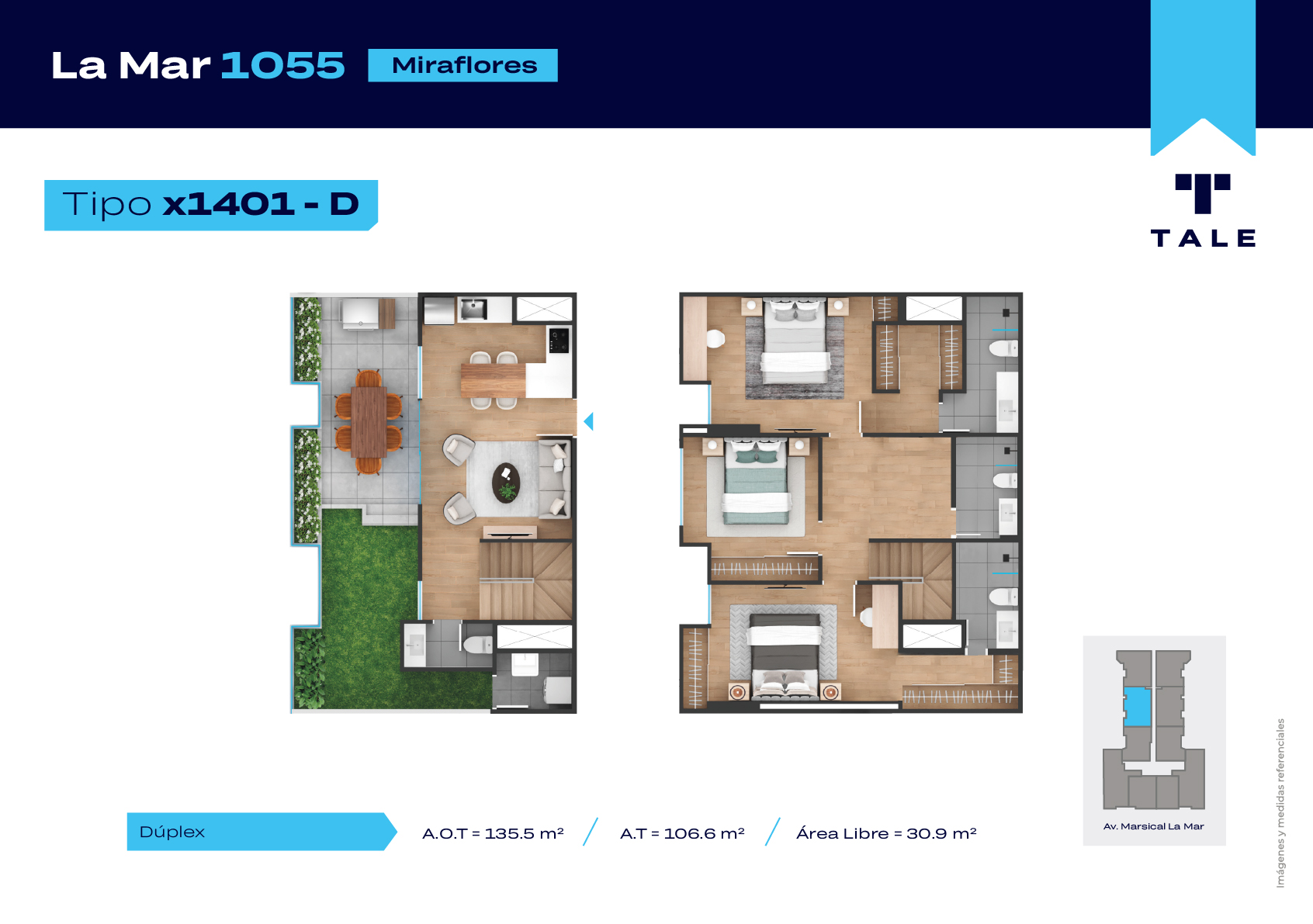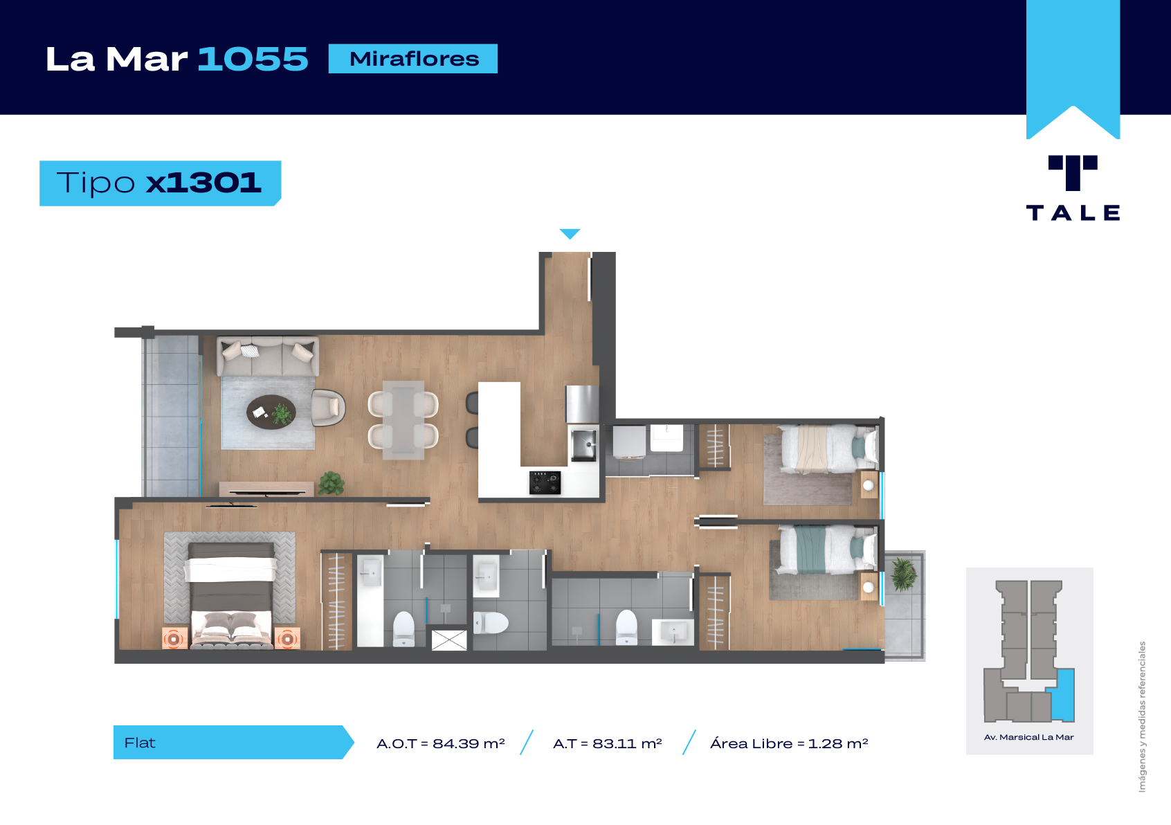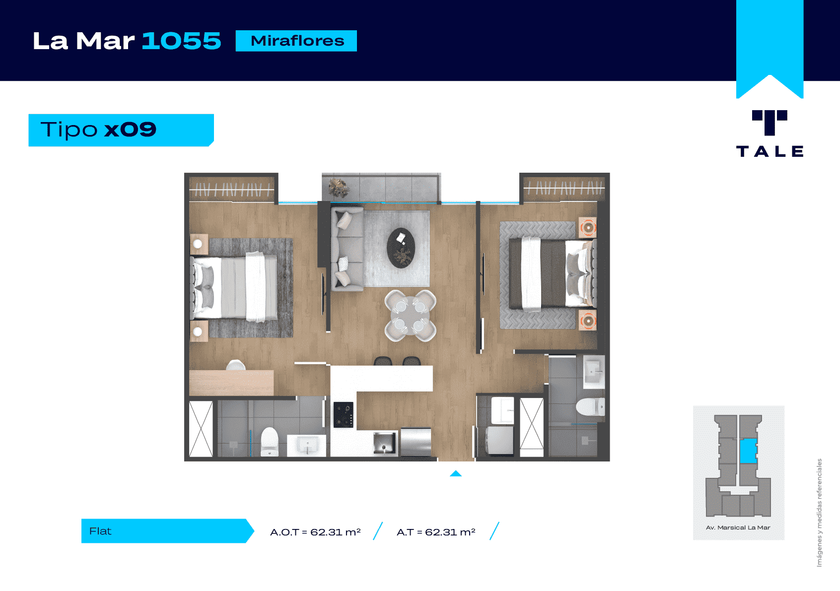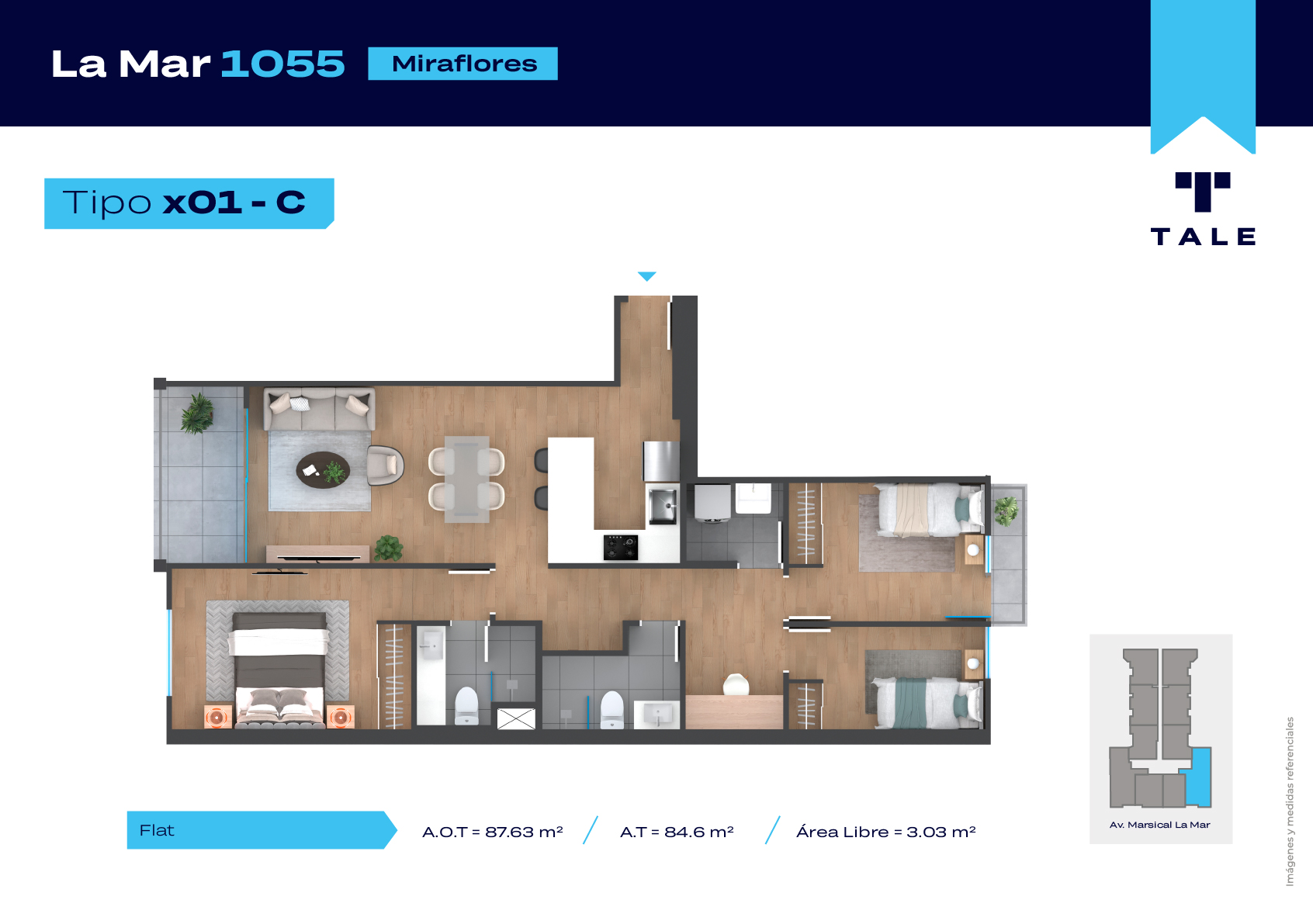 La Mar es una residencial de 13 pisos, a 3 cuadras y media del malecón y dentro del Hub Gastronomico de Miraflores. El proyecto cuenta con Lobby, Estacionamiento de bicicleta, Piscina, Terraza, Área de Parrillas, Sala de Jovenes y Gimnasio.